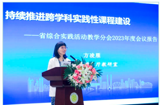 浙江省教育学会中小学综合实践活动教学分会副会长兼秘书长、省综合实践活动课程教研员方凌雁老师代表学会作题为《持续推进跨学科实践性课程建设》的学会工作报告。
