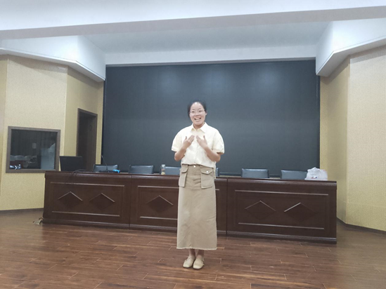 活动的最后,黄玲琍老师授课作《演讲技巧与情景模拟实战指导》的讲座,黄老师温州广播电视传媒集团正高级编辑(正教授),中国广播电视协会青少年节目研究会副秘书长及评委,(教育部)中国教育学会学校文化研究分会评委,也是一名心理咨询师和高级家庭教育指导师。她首先肯定了老师们的演说和表现,她们紧扣主题,激情澎湃,也指出了我们要特别注重从普通话突破、好声音训练以及多场景模拟这三个部分进行技巧训练,并在现场与刚刚演讲的一位老师通过理论引领同技巧训练相结合。黄老师以丰富的内容和多样的形式,搭建理论与实践的桥梁,助力老师们演讲表达理论与实践能力的提升。