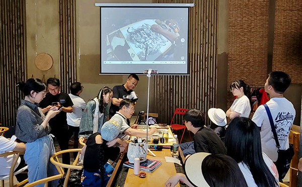 26日,朱凡老师围绕《水墨画形式与表现》、《速写的表达与概括》、《绘画写生创作示范》等几个主题带领学员解析自己的绘画作品并对作品进行详细的解读,体会画面构图、线条的美感以及氛围的营造。他认为在写生的时候可像诗人一样触景生情,在创作的前提下达到写生的高点,从而升华主题;并通过现场示范,展现了自己独特的创作技法,为大家奉献了一场视觉盛宴,精彩的演绎让学员们受益匪浅;最后,他建议学员们可利用碎片化时间,在繁忙的工作和生活中调整自己,从而持续输出作品。在朱老师的指导下,大家纷纷拿起手中的笔进行自由创作,体会在传统笔墨中寻找创新,用绘画语言来表达内心情感。