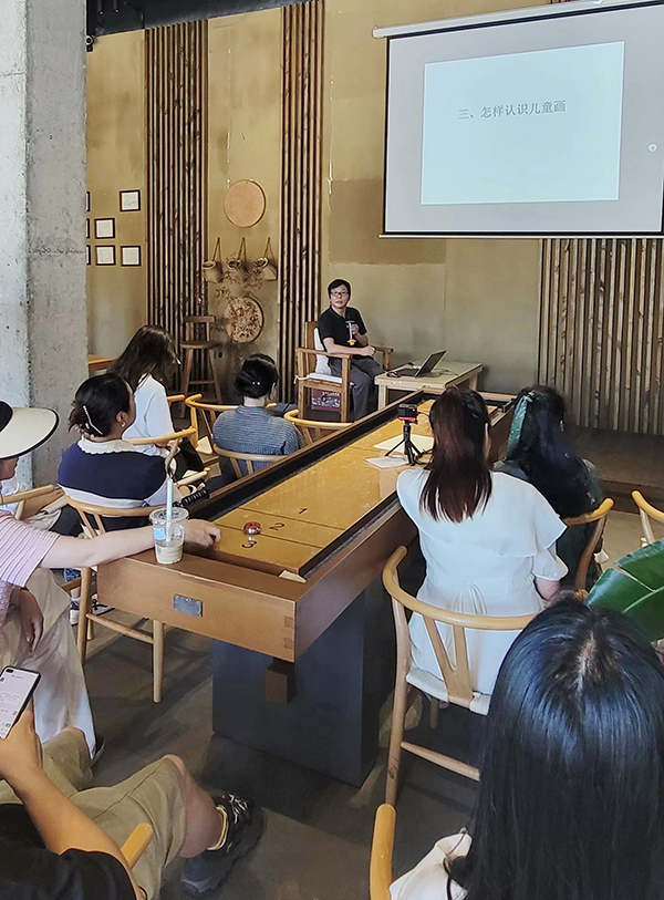 27日,平阳县职业中等专业学校的徐良存老师为大家进行讲座《谈谈对美的几点看法》,徐老师从色彩的审美感情,绘画的分类风方面徐徐展开,带领学员走进儿童画的世界。通过为什么要画儿童画?怎么样画是儿童画?怎么画好儿童画?三个问题深入讲解了儿童画轻松、自然、随意的特点。他强调现代教育重视人的知识结构和艺术素质,应用积极的思维去改变过去那种单纯的记忆和摹仿,儿童画最重要的是展现儿童内心的真情实感。