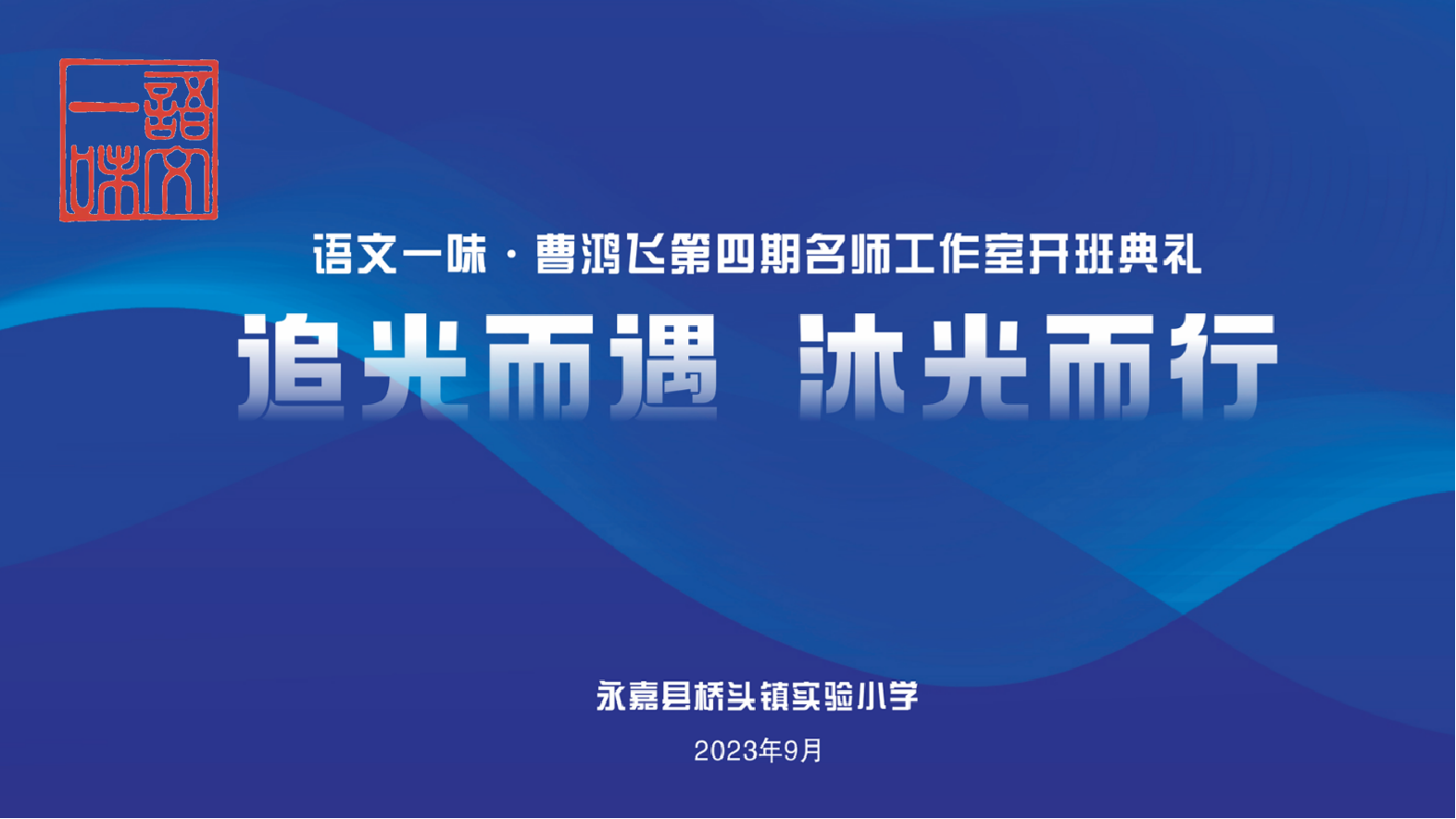 2023年9月15日,语文一味·曹鸿飞第四期名师工作室在永嘉县桥头镇实验小学开班。工作室主持人特级教师曹鸿飞、永嘉县教师发展中心主任滕琼琼、永嘉县名师工作室主任叶明月、永嘉县教育综合管理指导中心永临片区主任张泰源、永嘉县小学语文教研员、特级教师单志明、永嘉县名师办鲍丽燕、永嘉县桥头实验小学校长单素国莅临仪式现场,温州市第二期小学语文教学创新与评价改革项目组等80位老师参加了活动。