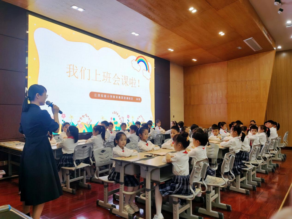 活动在主持人市府路小学李泽慧老师热情洋溢的话语中拉开了序幕。来自苍南县江滨实验小学渎浦校区的林琴老师为孩子们带来《做自己·悦成长》的主题班会。班会以“成长起航站、成长加油站、成长能量站”为脉络,从“听声音猜猜我是谁、猜猜他是谁、超级变变变”等环节,引导孩子们做一个独一无二、最幸福、最棒的自己,一步一个脚印,“悦”成长.