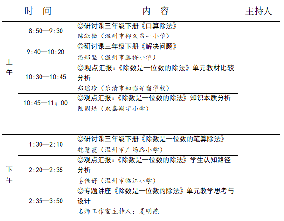 一、活动主题:立足认知路径,践行深度学习——《除数是一位数的除法》单元教学研讨;夏明燕名师工作室、陈舒舒名师工作室跨区域“联盟式”研修活动