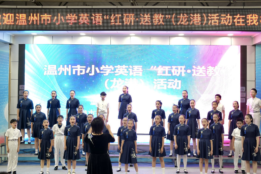 在活动开始前,龙港第四小学的学生们为与会者带来了声动梁尘的大合唱和精彩纷呈的课本剧表演。学生们多才多艺的表演得到所有与会老师的一致好评。