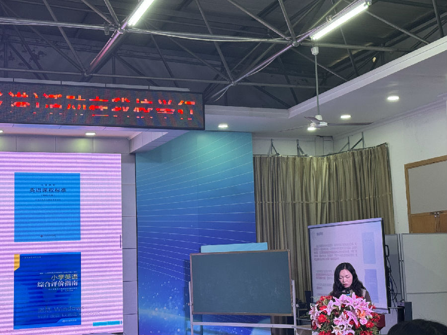 活动的最后一个环节,由浙江省特级教师、温州市小学英语教研员沈雨老师做教学引领和活动综述。沈老师充分肯定了今天的课堂和经验分享,沈老师认为早上两节综合实践课通过听、说、读、写、玩、演的学习活动设计完成了有意义的生活任务和语言实践活动,可以尝试将分项评价融合进综合实践活动,让学生的评价更真实、更有意义。针对下午的复习板块,沈老师指出复习课首先要确定不同年级段要突破的难点,要进行查缺补漏和语言的综合运用。在复习课的过程中通过有效的支架搭建进行语言活动设计,并且要注重学生学习方法与策略的指导。