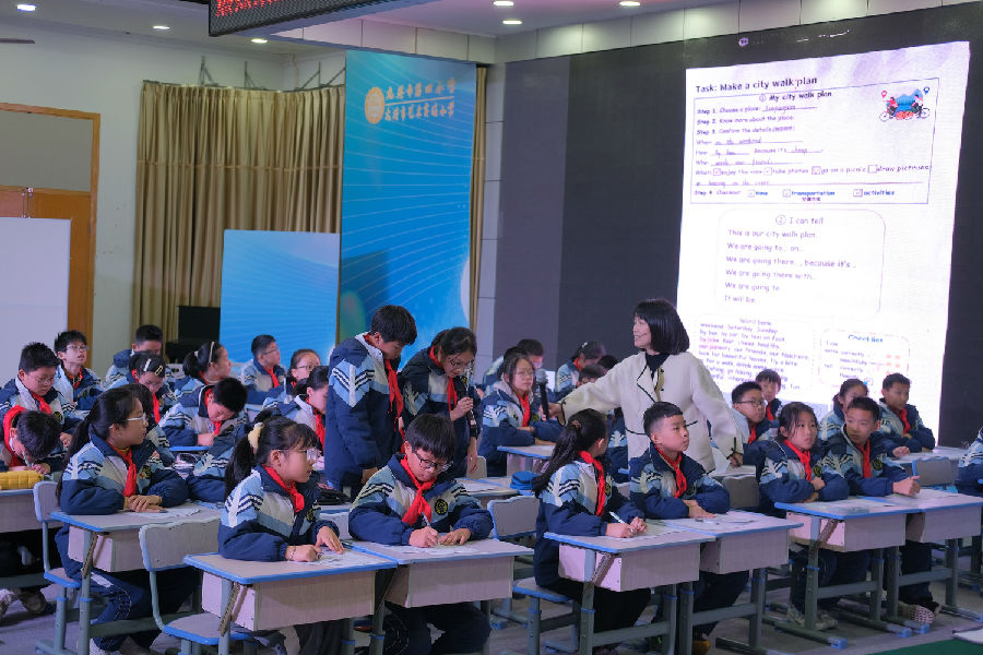上午第一堂课是来自龙港市江南实验学校的王茹茹老师的My City Walk Plan。王老师创设学生熟悉的真实情境,city walk in Longgang,激发学生的兴趣。教师通过关键性问题“How to make a city walk plan?”让学生通过阅读、内化、统整、最后完成自己的City walk plan 并进行有意义的语言输出与表达。