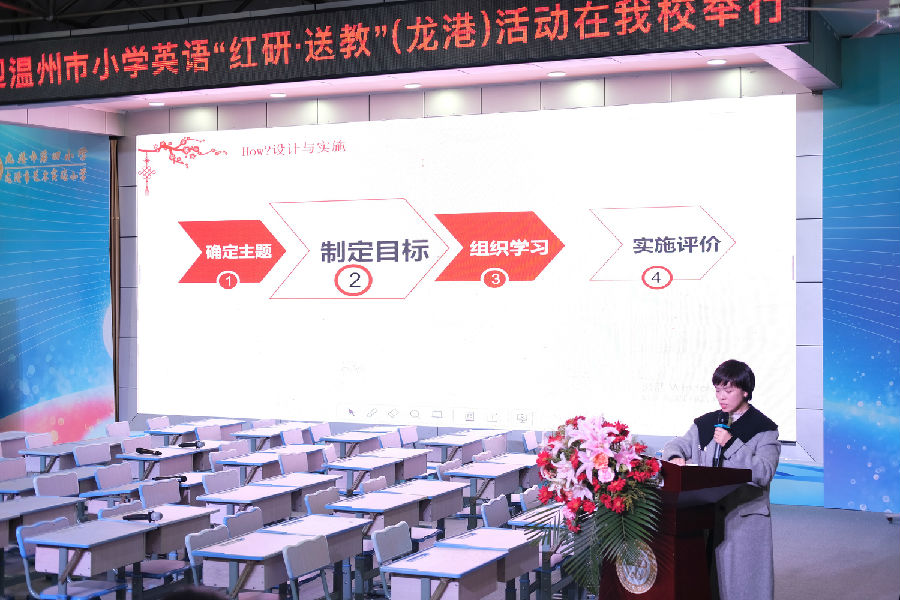 冬日暖阳沐人心,送教共研传真情。在新年伊始,我们共赴一场温暖的教研。2024年1月5日,温州市教师教学研究院小学英语教研员沈雨老师带领市名师工作室成员、“温州市小学英语”公众号管理员及市骨干教师代表来到龙港市第四小学,举办温州市小学英语“红研·送教”(龙港)活动。本次活动内容包括学生风采展示、领导致辞、教学展示、教学阐述、经验交流、专家引领等部分。