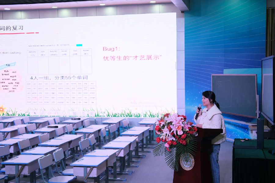 乐清市育英寄宿学校的吕雪佳老师就朱萍萍老师的复习课进行设计阐释,吕老师围绕语言难点攻克、阅读策略指导、写作框架建构为与会老师深入剖析本课的设计。同时吕老师也将磨课的过程和与会老师进行分享,一节高效实用的复习课也是经历主题的多次研磨,支架的过多重探索搭建,干货满满,让大家收获颇丰。