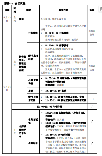 为贯彻实施教育部印发的《基础教育课程教学改革深化行动方案》,萃取名  师名家优秀的教学案例, 助力全面推进教学方式变革。根据 8 位名师教学智慧和  实践经验,总结归纳梳理形成《名师课堂内核:8 位特级教师的教学智慧解读》 一书, 这本书深入挖掘了这些名师们独特的教学艺术, 展示了他们在教学过程中  的创新理念、方法技巧和成功案例。在本书出版和相城区近年来取得丰硕教育教  学成果之际, 拟于 2024  6  13 日-16 日在苏州相城区举办一场“与名师面对  ”2024 夏全国名师教学艺术观摩研讨会,旨在通过名师主旨报告、名师示范  课、青年教师展示课、新书推荐等, 展示一线教学名师风采 为广大教师提供一  个学习交流的平台, 共同就教学艺术这一主题进行研讨 推动教学艺术的传承与