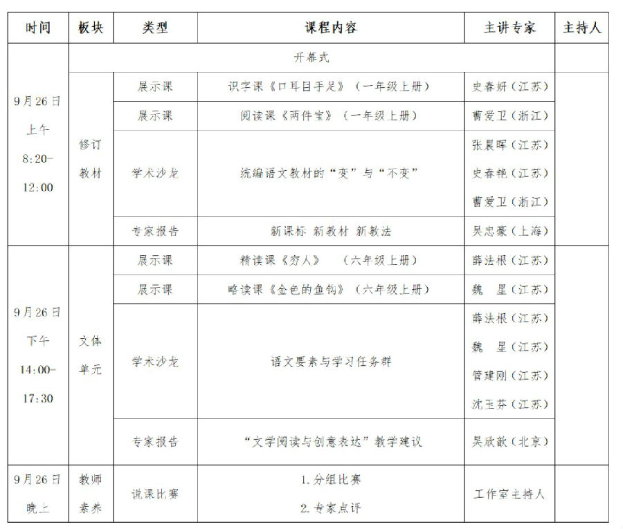 2.新教材教学观摩研讨。聚焦新修订的教材,以名师课例加最新文本解读的形式,展示课标理念下新修订教材的课堂学习新样态。