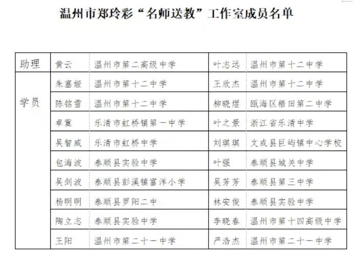 关于举行温州市郑玲彩“名师送教”工作室第10次活动的通知