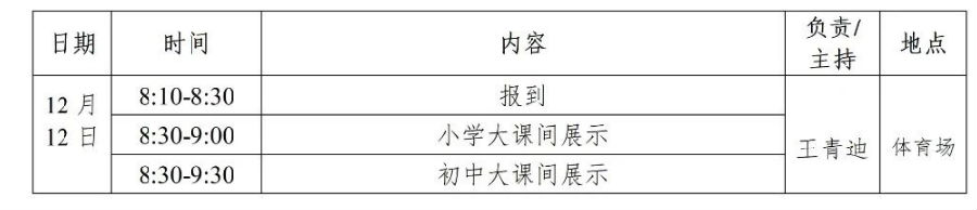 时间:2024年12月12日,上午8:20前报到,活动为期一天,上课老师11 日下午 5:00 前报到。