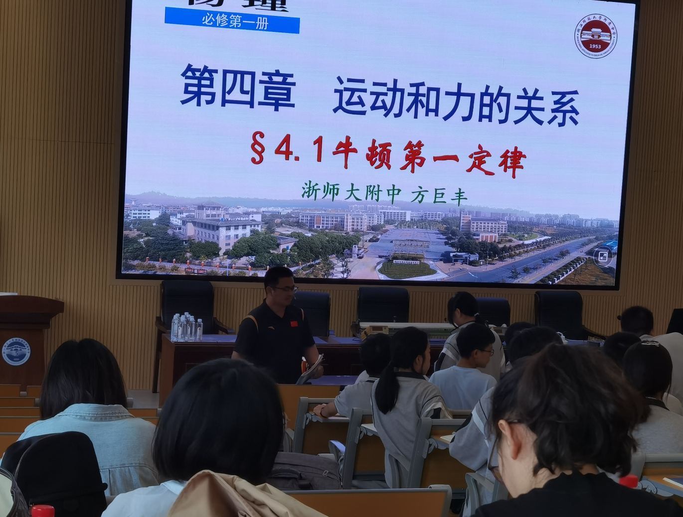 活动第二个议程是由平阳二中的杨鑫鑫老师做了《牛顿第一定律》以及金华兰溪五中和瑞安五中的3位老师分别关于《牛顿第二定律》的展示课。通过同课异构和差异课题的方法向我们展示了不同的课堂形式,效果很好。