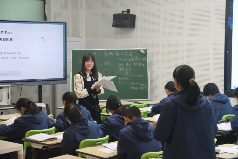 第二节课由乐清市乐成实验中学张芳艳老师执教《天上有颗南仁东星》。张老师将剖析人物传记的情感密码转化为可解构的情感方程。课堂以构建方程式为底层逻辑,带领学生用数据思维破译纪传体密码。