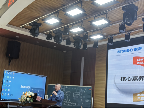 上午的压轴环节由龙湾区教师发展中心王则韬老师主讲讲座《指向核心素养的初中科学教学》。他结合新课标要求与上午的两节课,剖析了科学教学中如何进行探究实践与科学思维的教学。引发在场教师的深度思考。