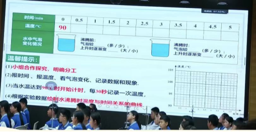 下午活动中,天河中学叶月臣老师以实验课《探究水沸腾时温度变化的特点》为载体,带领学生通过小组合作完成数据采集与结论分析,直观呈现“教学评一致性”理念在课堂中的落地。