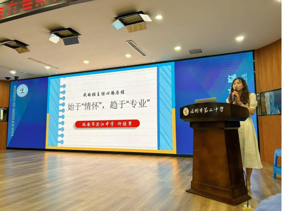 下午的活动过渡至“专业与情怀”专题分享环节。四位教师依次登台,结合自身教育实践中的鲜活经历,分享成长感悟,传递教育事业背后的温度与力量。