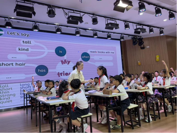 首先由高静老师执教PEP 3 Unit 2 My friend B Read and write,以“认识朋友、描述朋友、珍视朋友”为主线,构建了一堂兼具趣味性与思维深度的语篇教学课。这堂以“朋友”为主题的英语课,教学设计紧扣学生认知水平,层层递进地践行“以学生为中心”的教学理念。