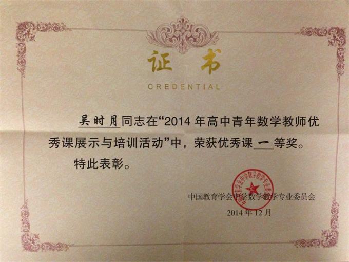 > 【喜报】热烈祝贺工作室成员吴时月老师荣获第七届全国高中青年数学教师优秀课一等奖