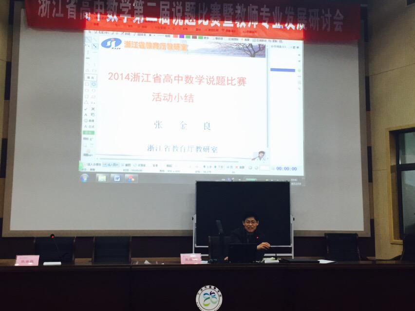 比赛现场,来自全省各地的中青年骨干教师针对比赛题目做出了精彩的解读,观摩教师的参与度也极高,在台下听题、做题、研题气氛热烈。我市于12月2日举行了温州市高中数学说题比赛,通过现场选拔,选派了温州中学的陈巴尔老师参加该次省级比赛。