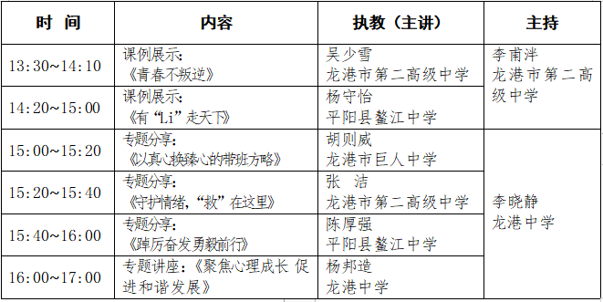 在 龙港市第二高级中学实验楼五楼心理教室举行活动,时间 0.5 天。