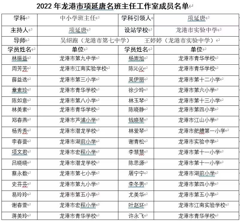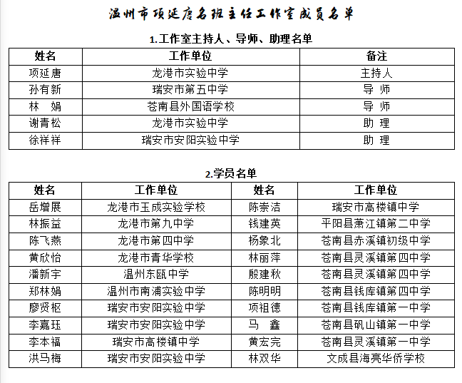 温州市项延唐初中名工作室、龙港市项延唐班主任工作室全体导师、成员