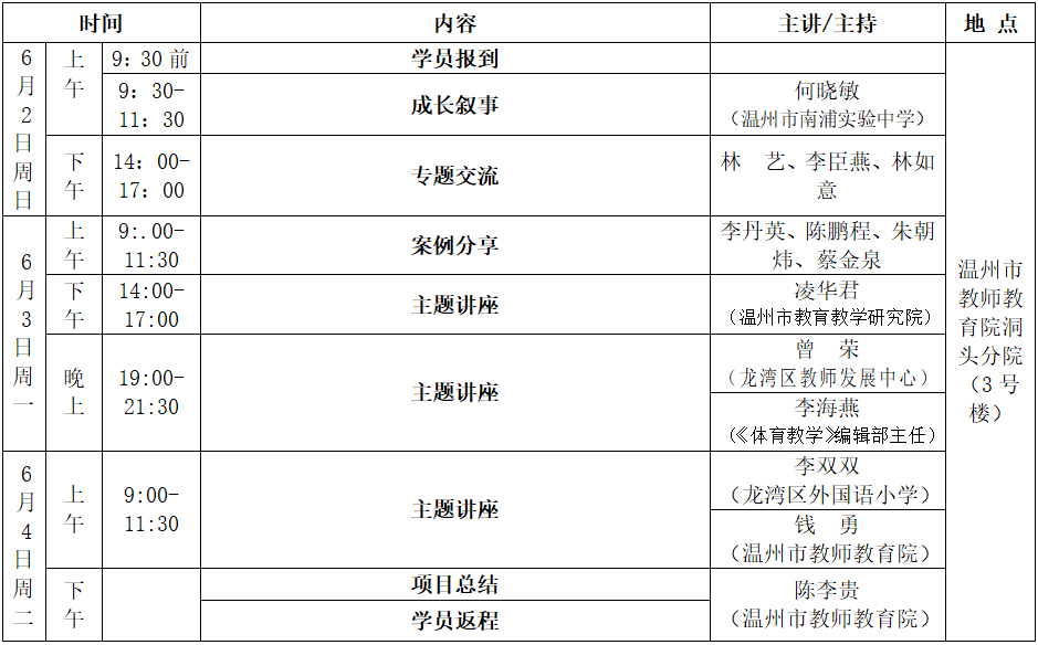 温州市 钱勇 名师工作室于 2024年06月02日 09:00:00时到2024年06月04日 16:30:00时