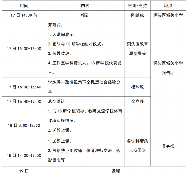 在 洞头区城关小学及各学校举行活动,时间 1.5 天。