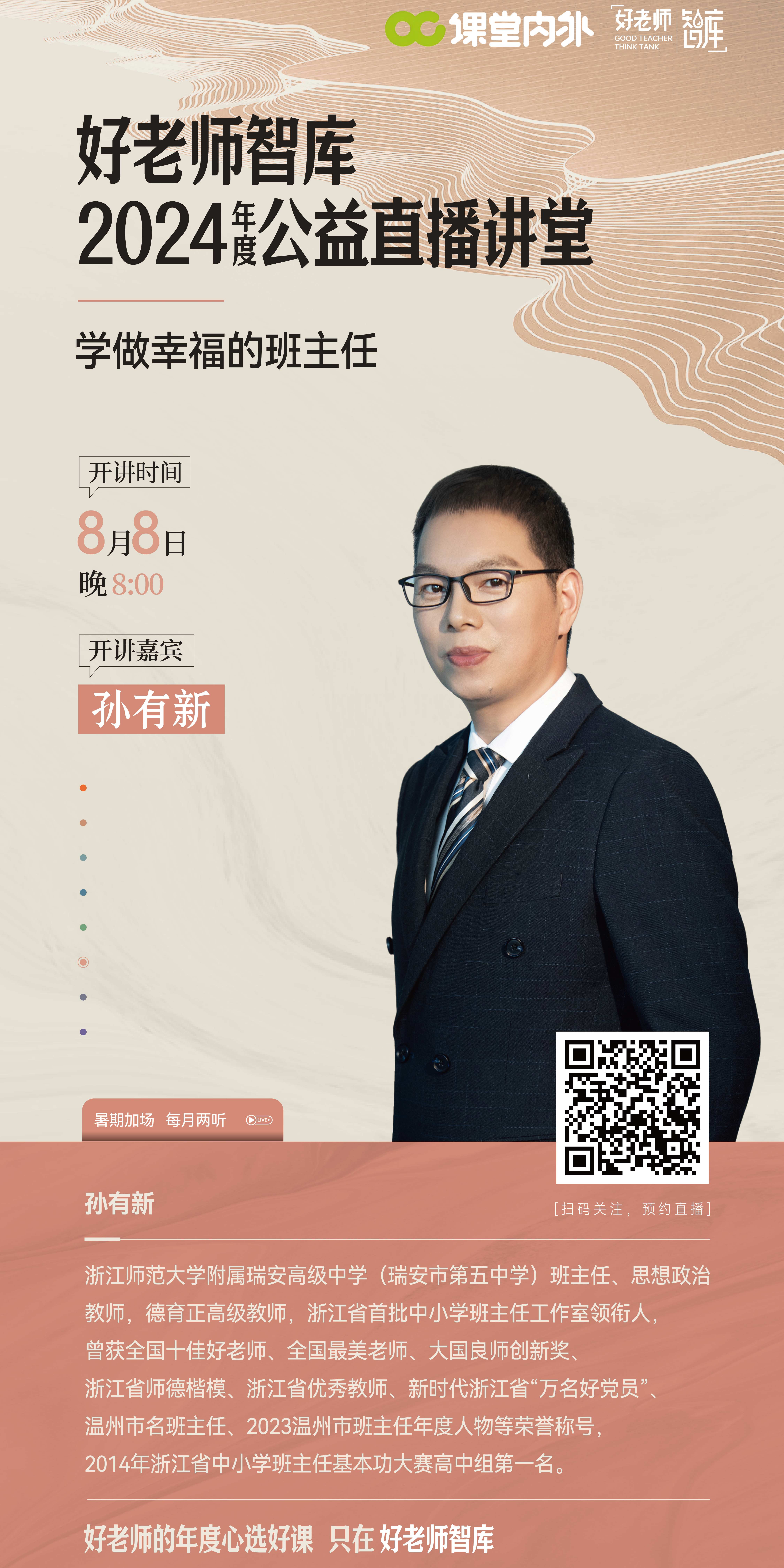 温州市 2023级孙有新“名师送教” 工作室于 2024年08月08日 20:00:00时到2024年08月08日 21:30:00时